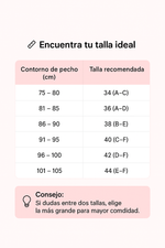 Para una comodidad y sujeción óptimas, es esencial elegir la talla adecuada. Te recomendamos que te midas el pecho y la parte inferior del tórax y, a continuación, consultes nuestra guía de tallas disponible en el sitio web. Si dudas entre dos tallas, elige la más grande para evitar cualquier sensación de incomodidad.